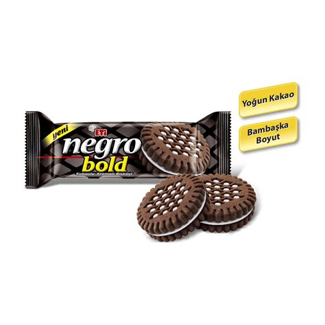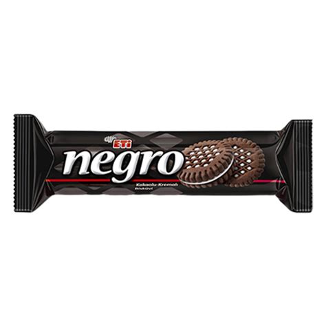 Kakaolu iki bisküvi arasında vanilyalı kremalıdolgulu büyük boy negro bildiğimiz lezzetiyle karşımıza çıkmakta. 120 gr lık paketinde 6 adet bulunmakta. Eti Negro, kahve yanına yakışan tatlardan biridir.