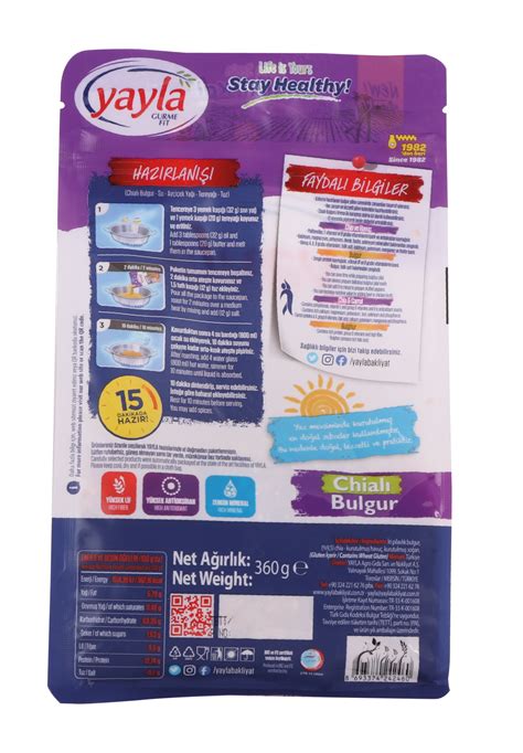 Kalorisinin büyük kısmını (%71) karbonhidrattan alan Yayla Gurme Fit Chialı Bulguru kilonuza göre hesaplayarak uygun miktarda tüketebilirsiniz.